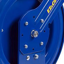 COXREELS SH Series Super Hub spring driven hose reels, like the P Series, have a long history of dependable performance. The larger chassis and frame accommodate longer lengths and larger diameters of hose. Coxreels original Super Hub dual axle support system increases the stability during operation, reduces vibration and strengthens the structural integrity of the reel. EZ-Coil Rewind Safety System; no electricity required; cartridge-style spring motor; powder painted steel construction; solid 1" steel center support shaft; double support points to the center shaft; full flow swivel joint; adjustable arm guide; 8-position locking ratchet. 4-roller hose guide; twin-siamese hose standard; multiple mounting positions